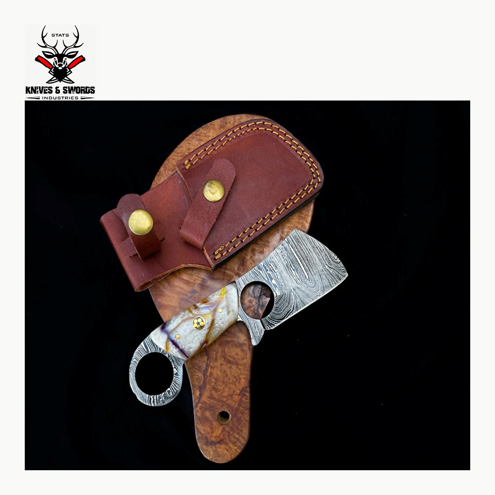 Condition: A brand-new, unused, unopenedOverall: 14 InchesBlade Length: 9 InchesHandle: 5 InchesBlade Pattern: TwistColor: BlackBlade Edge: StraightSet Includes: Butcher Knife, Knife SheathMaterial: Damascus SteelFood Compatibility: Meat, VegetablesMaking Method: ForgedFeatures: Non-Stick, Reusable, Rust Resistant, With Handles, with SheathHandle Material: Rose wood