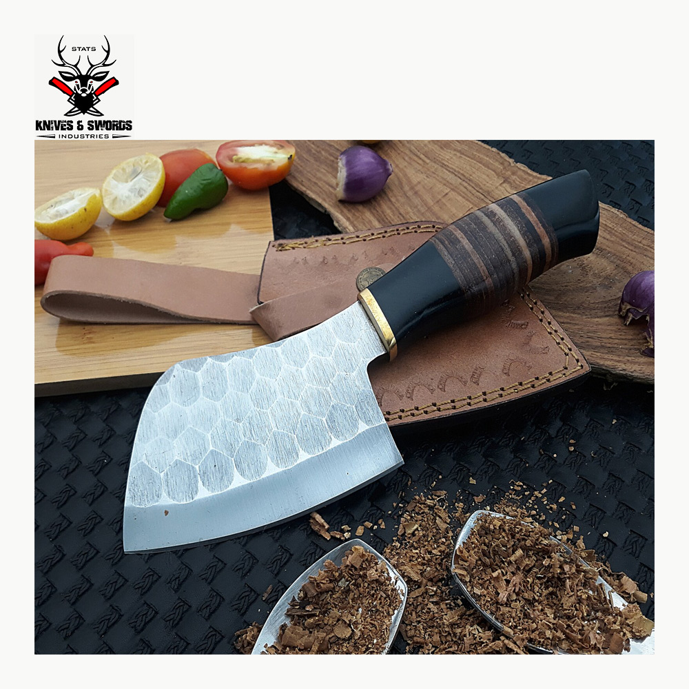 Condition: A brand-new, unused, unopenedOverall: 11 InchesBlade Length:7 InchesHandle: 4 InchesColor: BlackBlade Edge: StraightSet Includes: Butcher Knife, Knife SheathMaterial: High Carbon SteelFood Compatibility: Meat, VegetablesMaking Method: ForgedFeatures: Non-Stick, Reusable, Rust Resistant, With Handles, with SheathHandle Material: Ram Horn