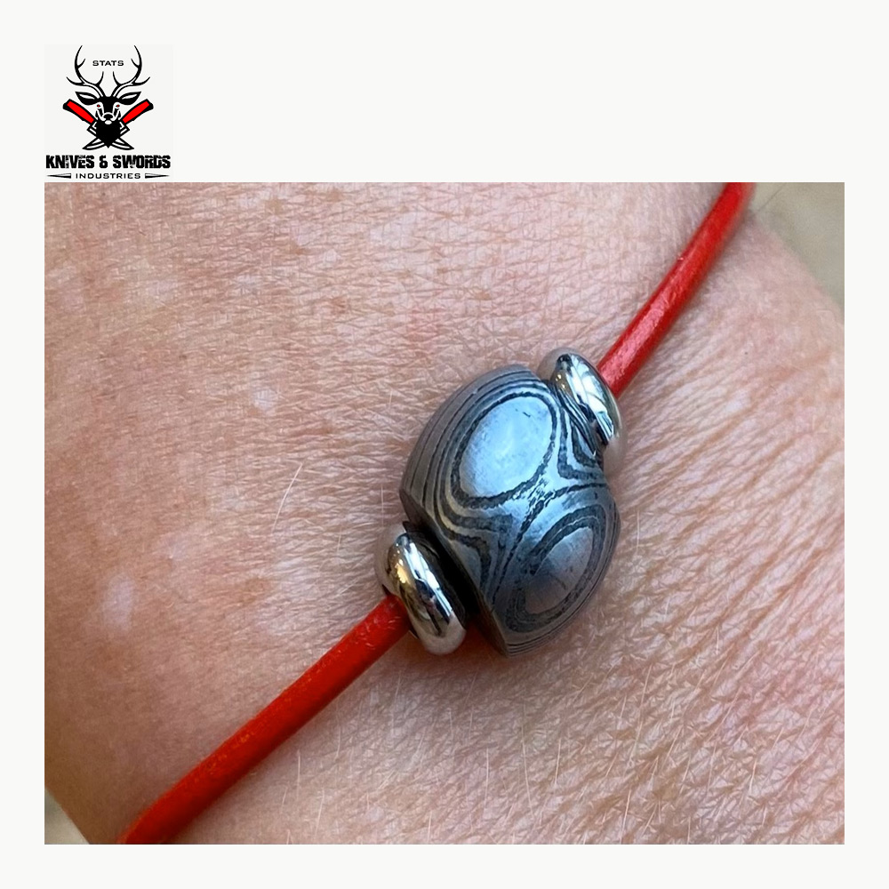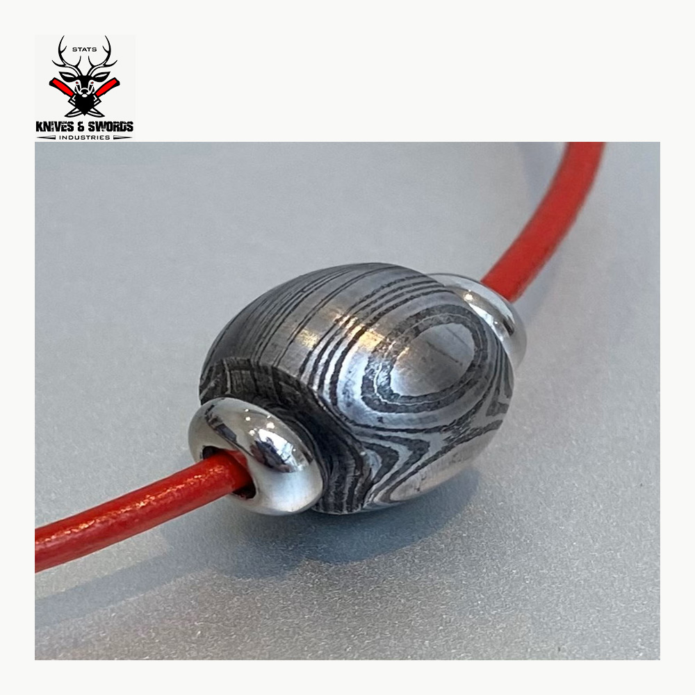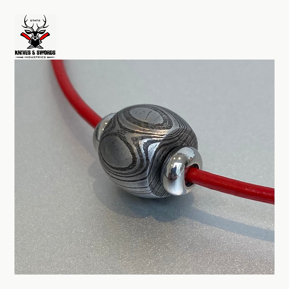 Metal: Damascus Steel Bead with Red cord