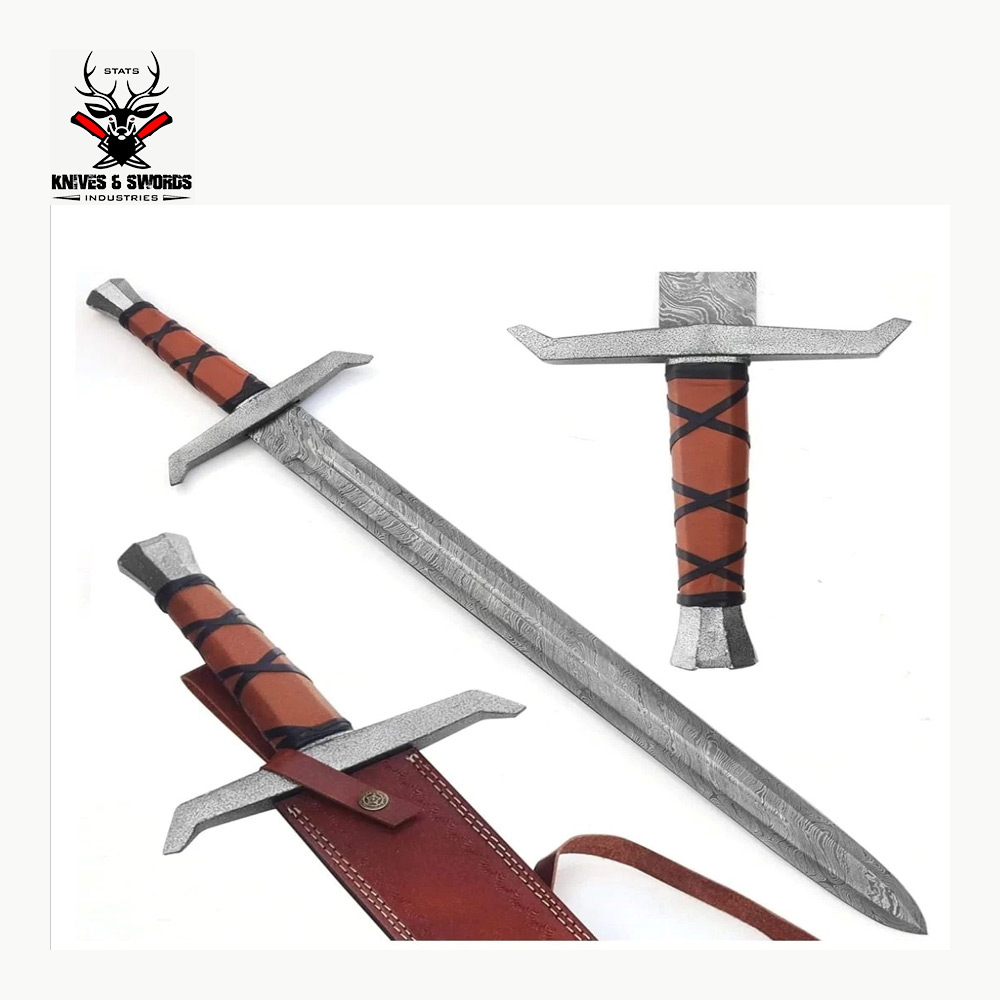 - Sword! Damascus Sword! Custom Handmade Damascus Viking Sword! Hunting Sword! Best quality! Outdoor sword! with leather Sheath